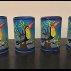 Hand-blown hand-painted cobalt glass tumbler set with toucan in a tree - set of 4. Brand new, never used$25Garden Grove, CA