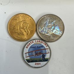 Lot Of 3 Collectible Statehood Quarters- Gold Plated, Holographic And Colorized $12Irvine, CA