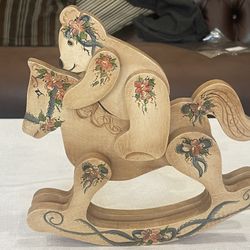 Hand-painted wooden rocking horse with a teddy bear rider and floral motifs.$20Anaheim, CA