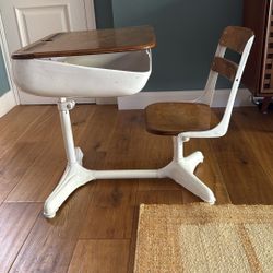 Antique Silent Giant Industrial Child School Desk Folding Chair Cast Iron & Wood$135Long Beach, CA