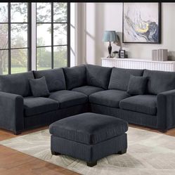 ✅️✅️ 4pc Black corduroy fabric upholstered sectional sofa with ottoman ✅️✅️$445Anaheim, CA