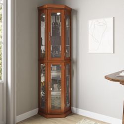 Assembled New Lighted 3-Side Glass Display Curio Corner Cabinet w/Tempered Glass Doors and Shelves $150Santa Fe Springs, CA