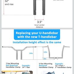 12'' Rise T-Bar Handlebar Drag Bar 1-1/4'' Diameter Gloss Black Compatible with Harley Sportster XL Touring Road King Softail Dyna 1996$85Gardena, CA