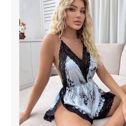 Floral Print Night Romper Lace Trim High Cut Lingerie Chemise Nightgown$15Whittier, CA