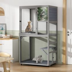 Cat Catio, 65inches, Cat House, Cat Condo on Wheels for Patio, Outdoor Cat Enclosure Window Access, NEW
