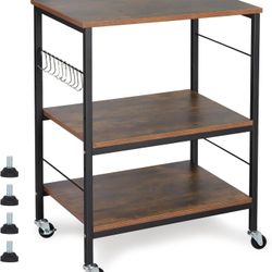 BTY Nightstands, Industrial Microwave Oven Stand Kitchen Baker's Rack End Table 3 Tier Storage Shelf with 10 Hooks for Living Room, Kitchen, Bathroom,$30El Monte, CA