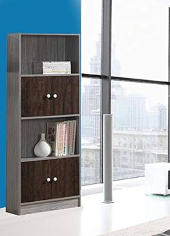 Grey and Brown Wooden 4-Tier Bookcase Storage Cabinet with 2 Shelves, 4 Doors$80La Habra Heights, CA