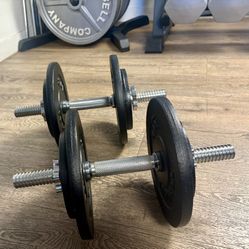 Set Of Cast Iron Standard (1.2 Inch) Dumbbells With 4 Weight Plates Of 10, And 4 Of 5 Pounds.$99Los Angeles, CA