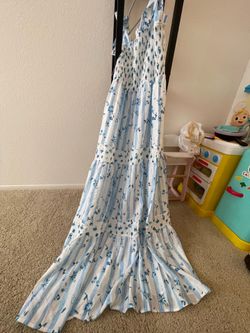 Long black dress with white vertical stripes.$18Santa Ana, CA