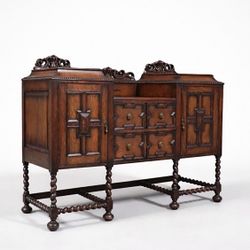 English Jacobean Style Oak Sideboard w/ Barley-Twist Legs, c.1900's - Delivery Available$1,295Los Angeles, CA