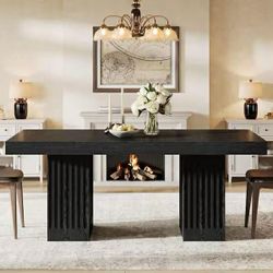 63 in. Black Wood Rectangle Large Pedestal Dinning Room Dining Table Seats 6 Modern Farmhouse$169Downey, CA