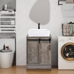 24" Farmhouse Bathroom Vanity with Sink, Bathroom Storage Cabinet with Sliding Barn Doors & Metal Handle, Freestanding Vanity with White Ceramic Recta$170El Monte, CA