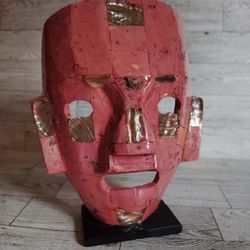 Mexican Handmade Mayan Aztec Art Stone Pink Mosaic Abalone Mask Decor 8.5"$35Anaheim, CA