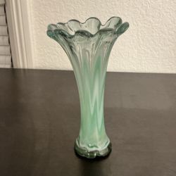 Hand Blown Art Glass Green Swirl Vase with Ruffled Edge Decorative Glossy Finish$15San Fernando, CA