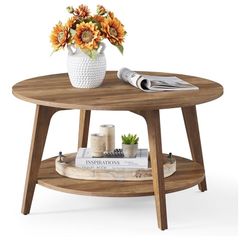 30" Farmhouse Coffee Table, French Round Coffee Table, Vintage Coffee Table with Distressed Wood Tray and Storage Shelf, Beige$85Bellflower, CA