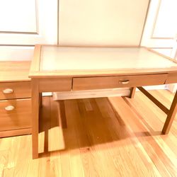 L Shaped desk with monitor stand, farmhouse style computer desk with LED light and power outlet, executive home office desk with filing cabinet Minor $120Los Angeles, CA