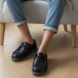 NEW Hey Dude Wendy Disco Sequin slip-on loafers Women’s Sz 6 Black flats shoes sneakers$53Glendora, CA