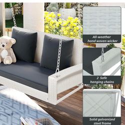 PE Wicker Porch Swing, 2-Seater Hanging Bench With Chains [NEW] **Assembly Req** $90Hacienda Heights, CA