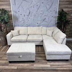 Beige corduroy sectional sofa with ottoman $519Downey, CA