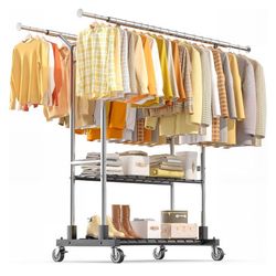 Luxspire Heavy Duty Clothes Rack – 650 lb Capacity, Double Rod, Rolling, Silver$70San Diego, CA