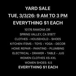 Yard sale everything $1$1Spring Valley, CA