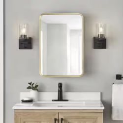 Glacier Bay 16 in. W x 24 in. H Rounded Corner Rectangular Brushed Gold Medicine Cabinet with Mirror$155San Diego, CA
