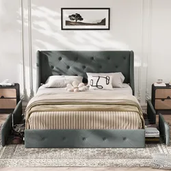 Losada 4-Drawer Upholstered Storage Bed with Wingback Headboard - Maximize Bedroom Space, No-Hassle Under Bed Storage,Queen Size