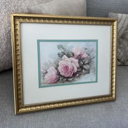 Vintage Sonie Ames Pink Roses Framed Print | Gold Frame Cottage Floral $68Chula Vista, CA