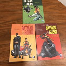 Batman and Robin graphic novel collection by Grant Morrison, including Batman & Robin, Batman Inc., and Batman & Robin Vol. 2. #Batman #GraphicNovels$15San Diego, CA