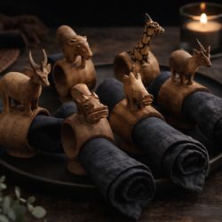 Safari Animal Napkin Rings Set of 6 – Hand Carved Olive Wood, Vintage African Boho Table Decorations$56Lakeside, CA
