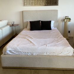 White Bouclè Upholstered Bed Frame w/ Wood Trim$675Imperial Beach, CA