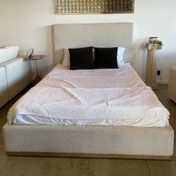 Designer~Style White Bouclè Bed Frame w/ Wood trim 🪵 $675Chula Vista, CA