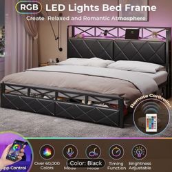 King bed frame with LED light and charging station Brand New$165San Diego, CA