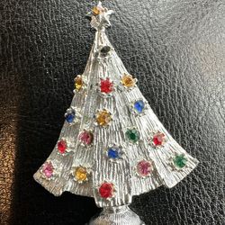 vintage silver-tone Christmas tree brooch pin with multi-color rhinestones.$35Chula Vista, CA