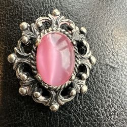 vintage-style metal brooch featuring an oval, pink simulated tiger's eye or cats$20Chula Vista, CA