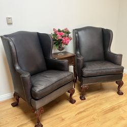 Real Leather Chairs Solid Wood Hickory Chair Co Vintage $450Poway, CA