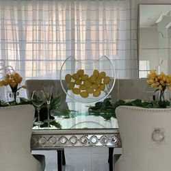 Brand New 48" x 30" Round Glass Dining Table + 4 Biege Linen Chairs$599San Diego, CA