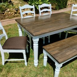 Dining table chairs and bench solid wood kitchen table set$625Spring Valley, CA