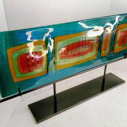 Modern Art Fused Glass Panel Designed by Lynn Latimer Studios 'Tribal 3' in Display Stand$650San Diego, CA