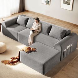 105.5” Cloud Boneless Sectional Sofa for Living Room, L-Shaped 4-Seater Modular Couch with Ottoman & 4 Pillows, Deep Seat Chenille Fabric Sofa$186San Diego, CA