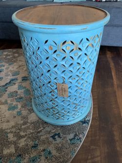 End table in a soft pale turquoise. Chalk painted, beautiful detail as shown in picture$25San Diego, CA