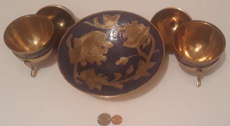 Vintage Set of 2 Brass and Enamel Faberge Eggs and Dis, Bowl, 6" Brass Eggs on Stands, Home Decor, Table Display, Shelf Display$115Lakeside, CA