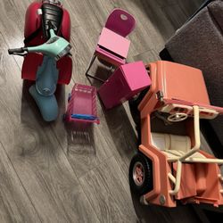 American Girl Dolls Jeep Plays Music Ad And Vespa With Locker And Desk$45Lincoln Acres, CA