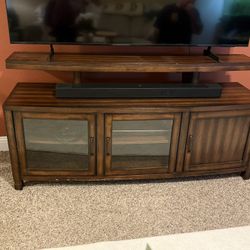 Wood And Glass Tv Stand With Tv Mount Attached$25San Diego, CA