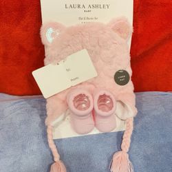Laura Ashley Baby Hat & Bootie 2 Piece Set Sz 0-6 Months Light Pink w/ Ears-NWT$5Chula Vista, CA