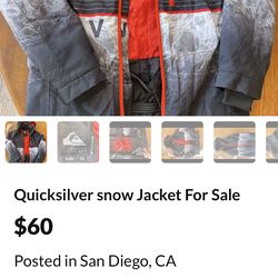 Quicksilver 14XL snow jacket$60San Diego, CA