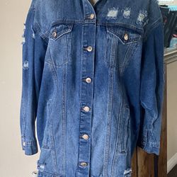 FOREVER 21 WOMENS DENIM JACKET SIZE M DISTRESSED DESTROYED BLUE OVERSIZED JEAN JACKET$30San Diego, CA