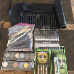 Lot Of Special Effects Makeup, Brushes And Brush Rollout Carrier Bag$25Santee, CA