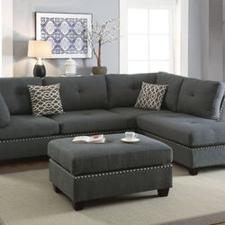 Brand New 104" x 75" Dark Gray Linen Studded Reversible Sectional + Ottoman$799San Diego, CA