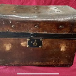 Antique LEATHER Wood Trunk, Storage Chest & Stool on Wheels$225San Diego, CA